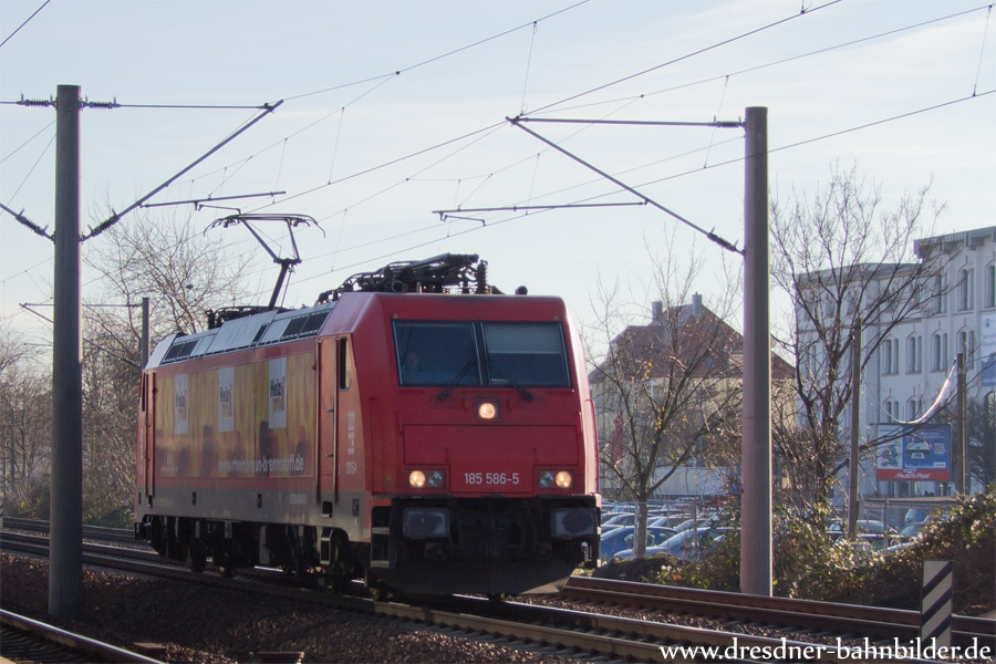 185 586 aus Richtung Pirna kommend, fährt durch Dresden-Dobritz. 16.12.2013